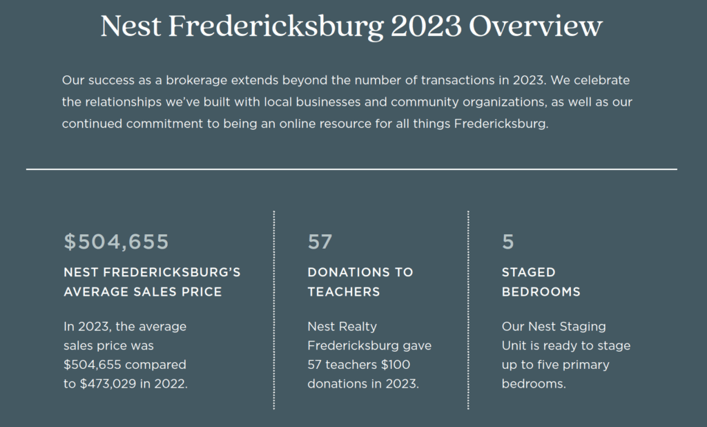 We are proud to present you with this synopsis of the national, regional, and localized trends that matter most, found here in our Fredericksburg 2023 Annual Report.