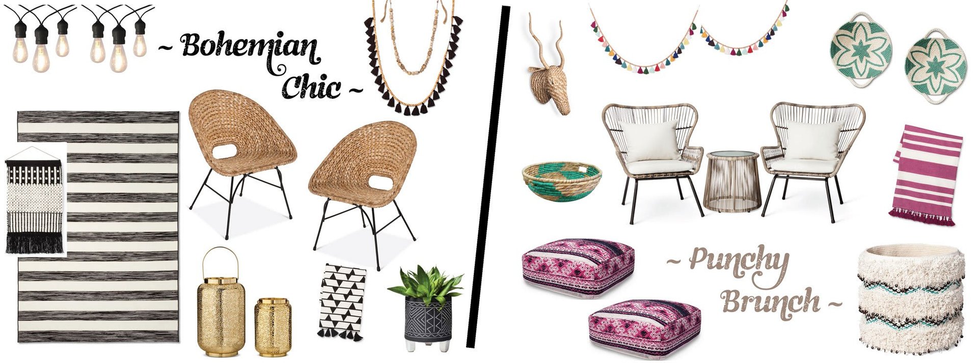 We got a sneak peek at the new ThresholdTM line from Target! We’re swooning over the natural textures and vibrant patterns. We created two different looks to increase your patio appeal! If you’re drawn to more subdue and neutral palette, up your wow factor with our Bohemian Chic selections. If a fresh color pop is more your style, try our Punchy Brunch finds. Either way, you’re on your way to creating your own outdoor oasis...